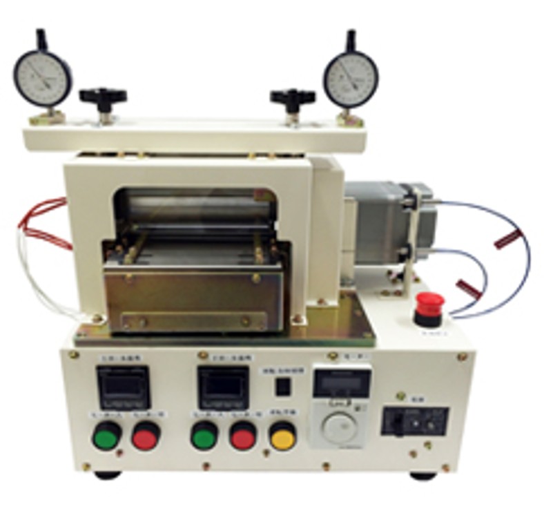 是利用辊间距离调节式轧辊冲压机,进行锂离子电池等电极的高密度化、调厚、各种材料的轧制、压实等的装置。